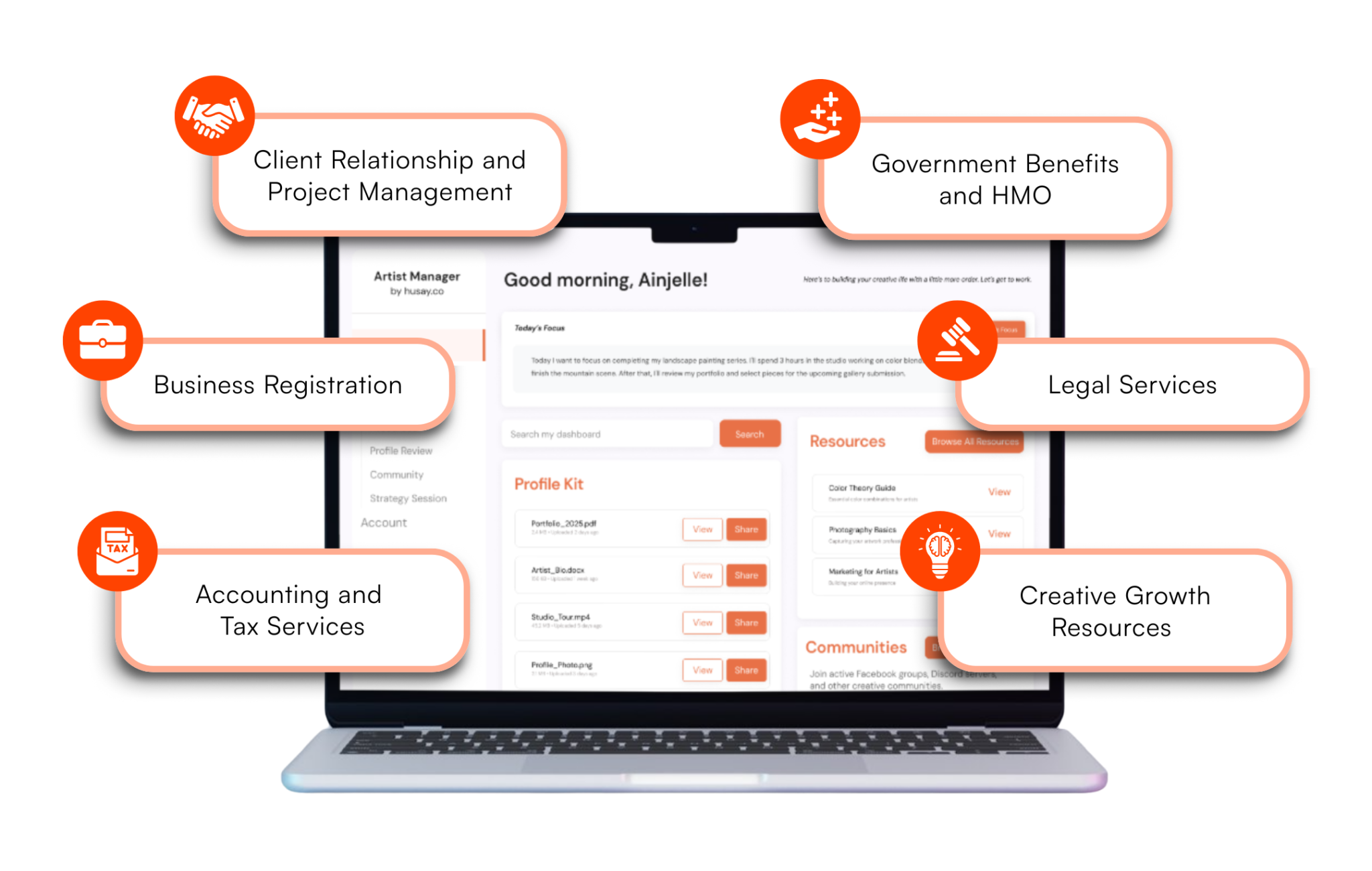 Manager Husay is for Filipino creatives who want structure, clarity, and growth. Experienced or not, all artists are welcome to join, especially if you’re self-employed, a freelancer, or a full-time employee trying to transition to an independent working set-up.